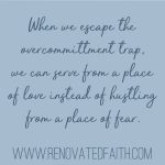 How To Escape The Overcommittment Trap “When we escape the overcommittment trap, we can serve from a place of love, instead of hustling from a place of fear.” www.renovatedfaith.com
